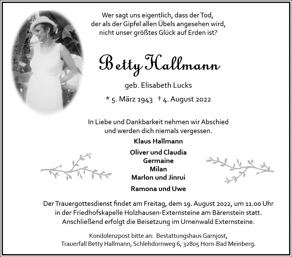 Betty Hallmann geb. Elisabeth Lucks