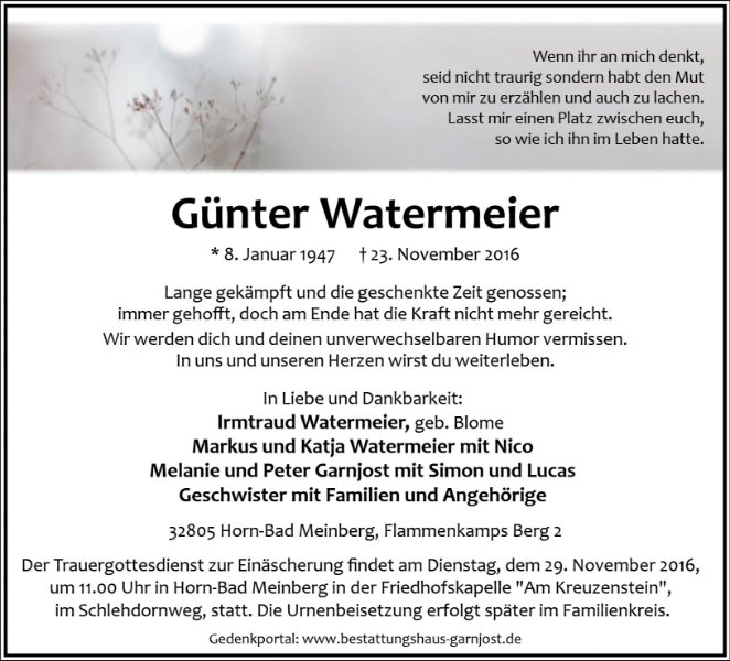 Lasst mir einen Platz zwischen euch, so wie ich ihn im Leben hatte."