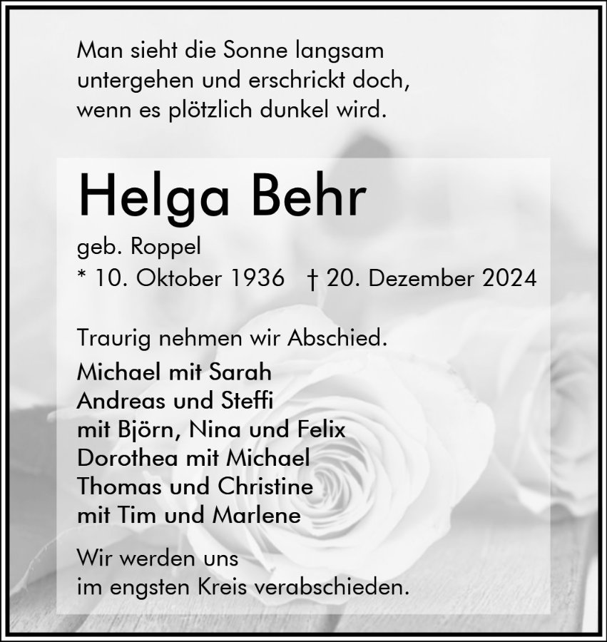 für die kommende Zeit wünschen wir Ihnen viel Kraft, und dass es Ihnen gelingt, dankbar auf die positiven und schönen Erinnerungen zurückzublicken. Diese Gedenkseite möge Ihnen dabei helfen, Ihre Trauer zu teilen und das Andenken gemeinsam wachzuhalten.