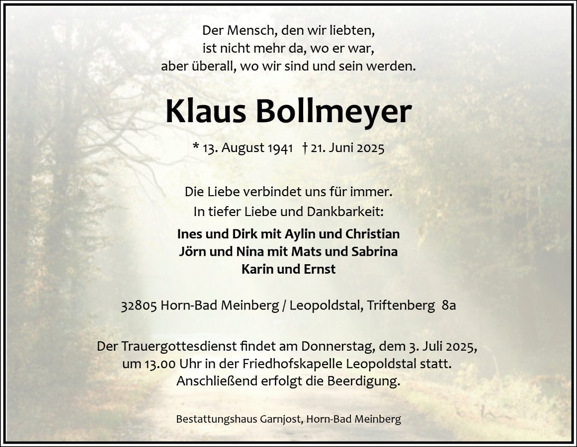 Klaus Bollmeyergestorben am 21. Juni 2025