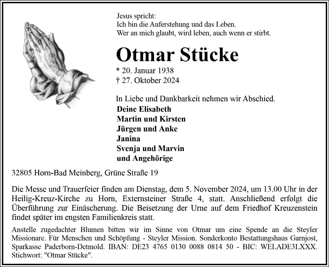 gestorben am 27. Oktober 2024 in Horn-Bad Meinberg